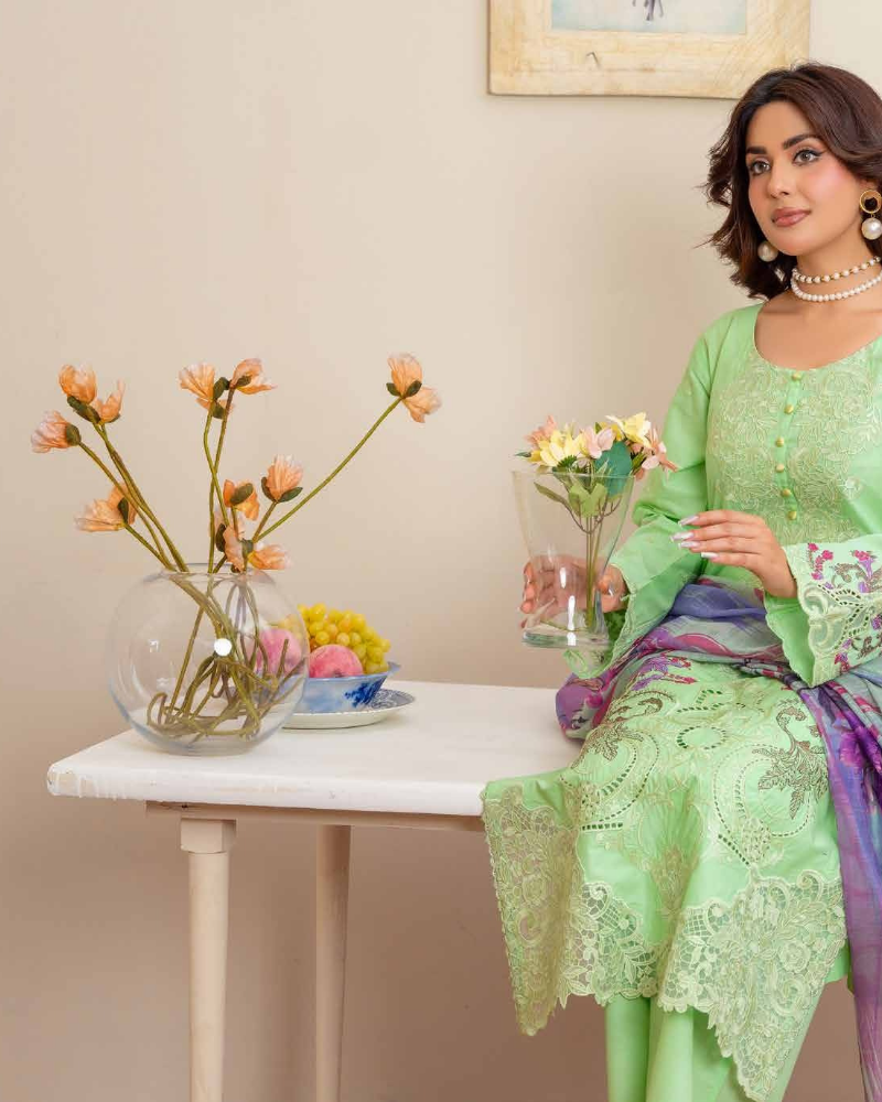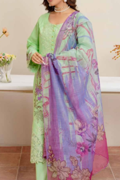 Mint Green Pastel Embroidered Lawn Suit with Floral Accents