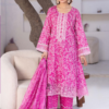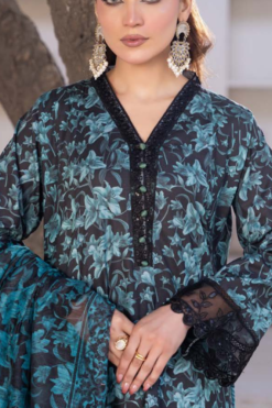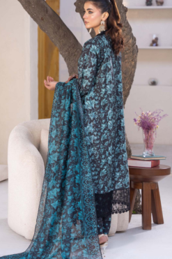 Elegant teal floral embroidered Slub Dhanak 3 piece suit with embroidered shawl and matching dyed trouser